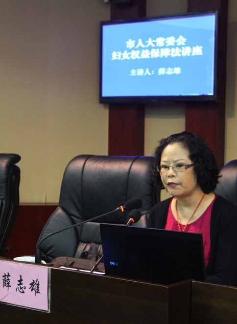 会议邀请都江堰市妇联主席薛志雄对妇女权益保障法及相关法律法规进行了专题讲解。薛志雄从妇女权益保障法的立法背景以及发展过程、妇女权益保障法的主要内容、妇女权益容易受到侵害的类型、保护妇女合法权益的途径等方面作了详细的讲解,结合都江堰市部分妇女维权案例,分析了当前妇女权益保障工作存在的问题,并对下一步工作提出了建议意见。通过培训,与会人员对妇女权益保障工作有了更加深入的了解。