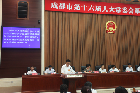 会议听取了市十六届人大常委会主任会议关于提请审议《市人大常委会执法检查条例(草案)》议案的说明,市法院关于人民法庭建设工作的情况报告,市政府关于我市“交通先行”战略实施、义务教育均衡发展、大气污染防治工作、龙泉山脉生态植被恢复工程建设等的情况报告,市政府关于提请审议成都市与以色列海法市、泰国清迈府、丹麦霍森斯市建立友好城市(市府)关系的议案的说明,市政府和市法院有关人事任免事项的说明。