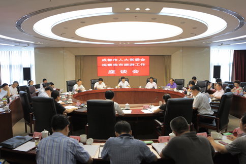 座谈会上,市旅游局和国色天乡、成都中国青年旅行社、润邦国际酒店等旅游企业代表先后发言。市人大代表王眉潮、莫丽华、江溶、王荔、杨丽等旅游工作专项评议调查组成员为加快我市旅游工作发展提出了意见建议。